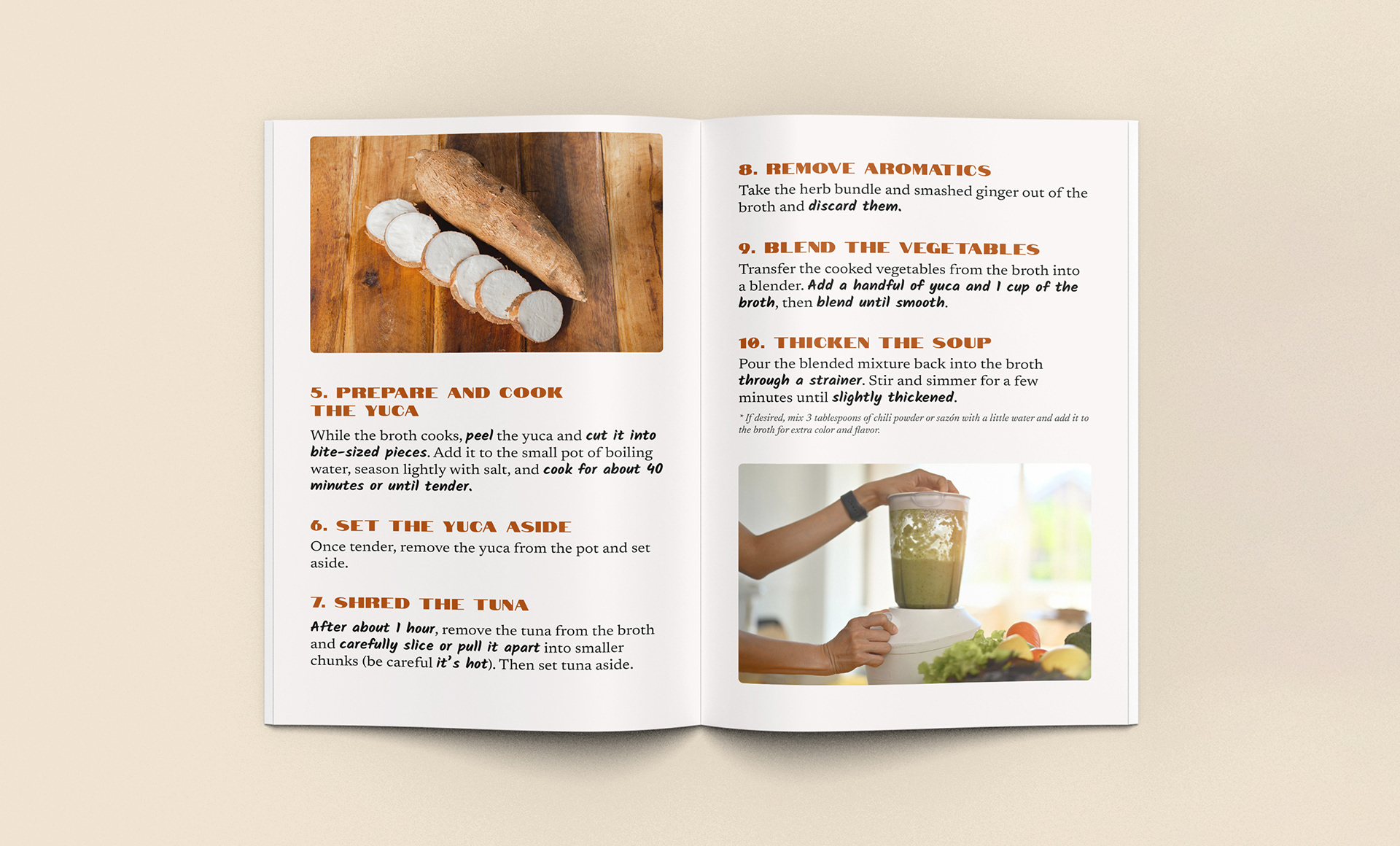 Throughout the minizine clear easy to follow instructions are added to let readers comprehend the dish in digestible pieces. Important key words can be seen highlighted to keep readers engaged to ensure important steps are not forgotten. As you progress through the steps images corresponding to specific steps help readers have visual stimulation to better absorb the recipe seen.